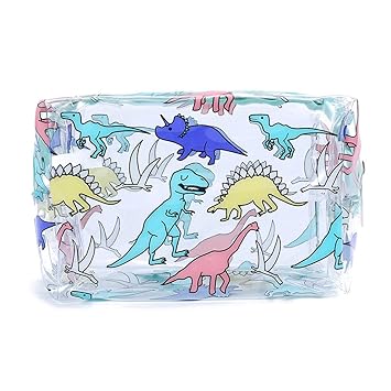 A Clear Makeup Bag Featuring An Assorted Dinosaur Print A Top
