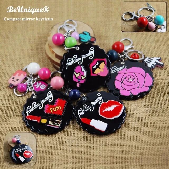 2017 New Woman Fashion Mini Makeup Compact Mirror Keychain Diy
