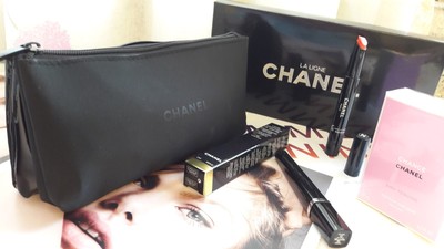 Chanel Beauty Makeup Bag Pouch Trousse Polyester Patent Black Double