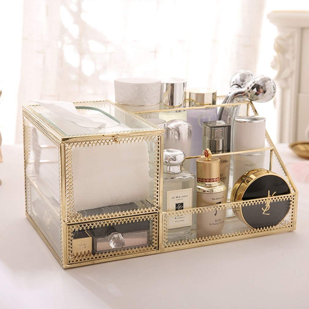 Amazon Com Cosmetic Organiser Glass Makeup Storage Box With Drawers