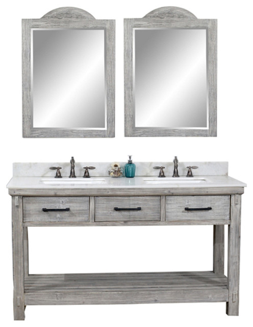 Rustic Fir Double Sink Vanity In Gray Driftwood With Arctic Pearl