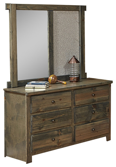 Driftwood 6 Drawer Dresser With Landscape Mirror Rustic Bedroom