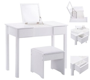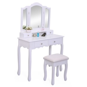 Folding Mirror Vanity White Dressing Table Set Makeup Desk Dresser
