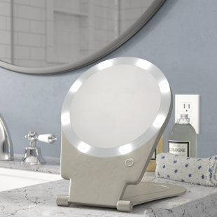 Vanity travel mirrors vanity travel mirrors. Folds like the size of a piece of paper when closed. Makeup shaving and features. 7x magnified led lighted makeup mirror two sided light up illuminated makeup vanity mirrorstouch sensor switch 3 levels adjustable brightness rechargeable table top cosmetic mirror white 44 out of 5 stars 289.