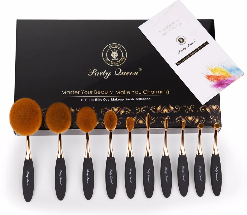 Party Queen 10pcs Elite Oval Makeup Brush For Face Eyeshadow Lip