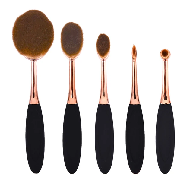 5pcs Set Tooth Makeup Brushes Elite Design Rosegold Oval Makeup