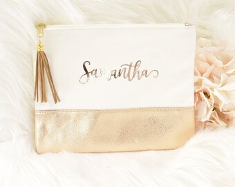 Rose Gold Makeup Bag Personalized Bridesmaid Gift Etsy