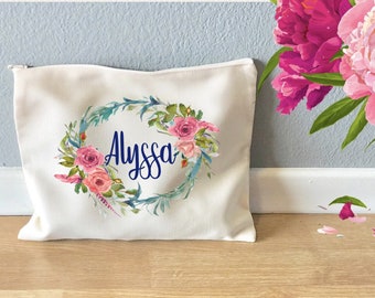 Monogram White Cosmetic Bag Personalized Floral Bags Etsy