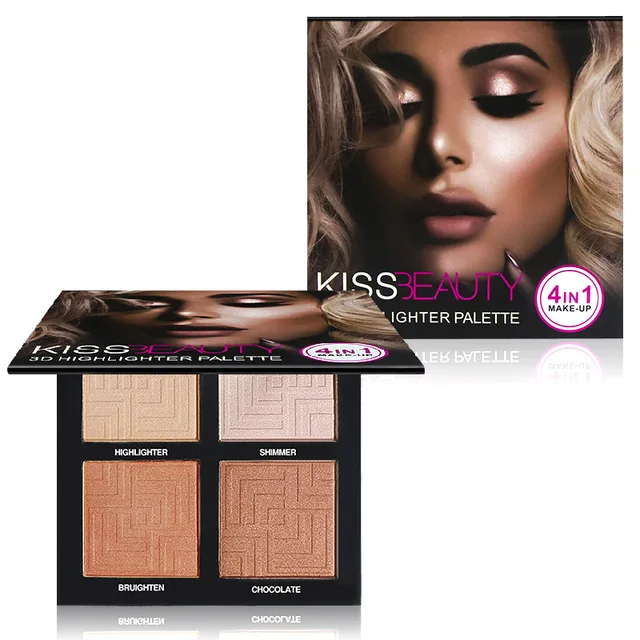 4 Color Bake Powder Glitter Palette Highlights Face Contour