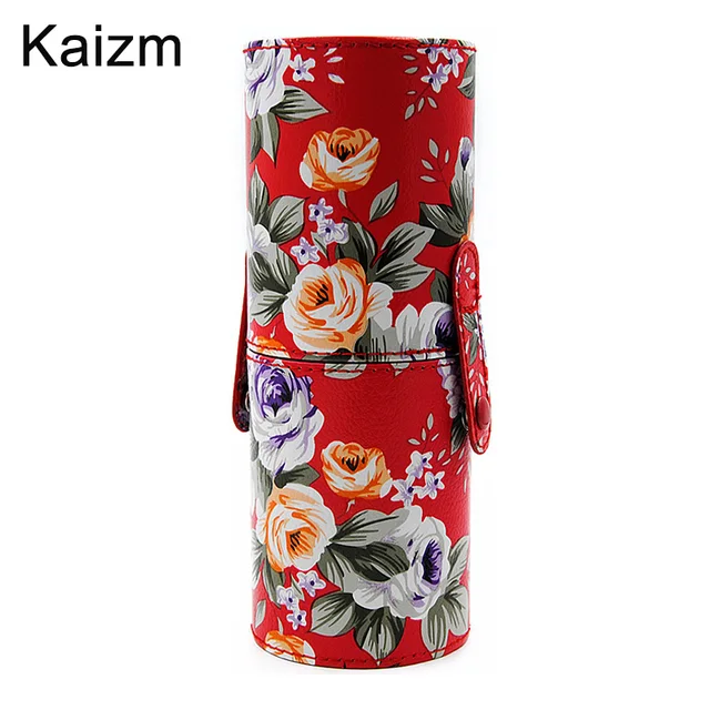 Aliexpress Com Buy Kaizm Flower Makeup Brushes Holder Cup Floral Print Empty Pu Leather Holder Cup Cosmetic Brush Box Makeup Brushes Container From