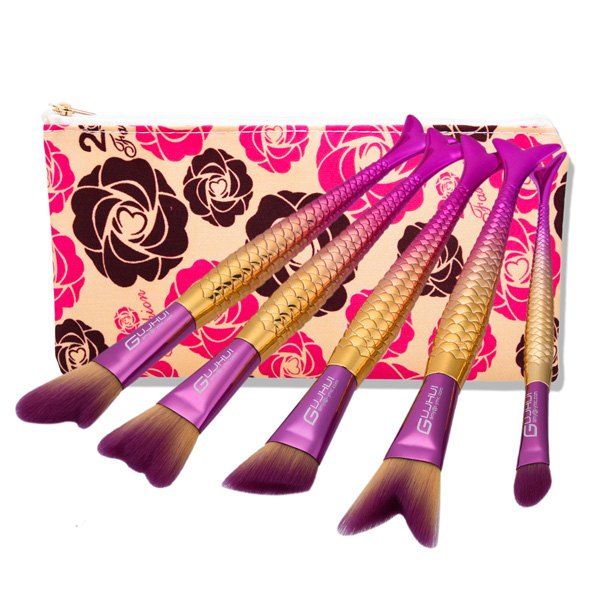 Mermaid Tail Makeup Brushes Set With Floral Brush Bag