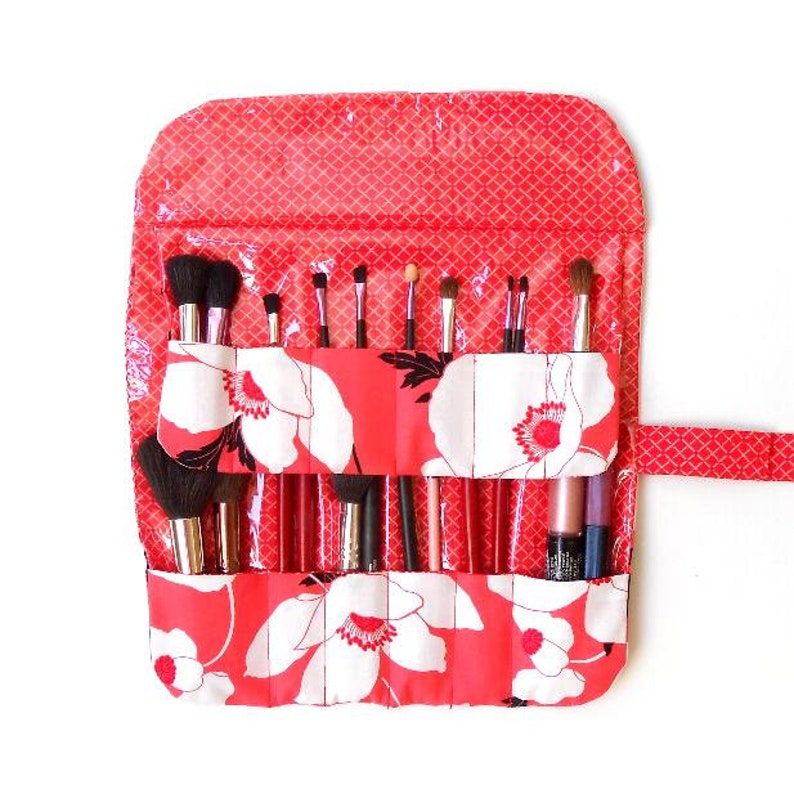 Pink Floral Makeup Brush Case Travel Brush Carrier With 7 Pockets Cosmetic Holder Gift For Her Gift For Mom