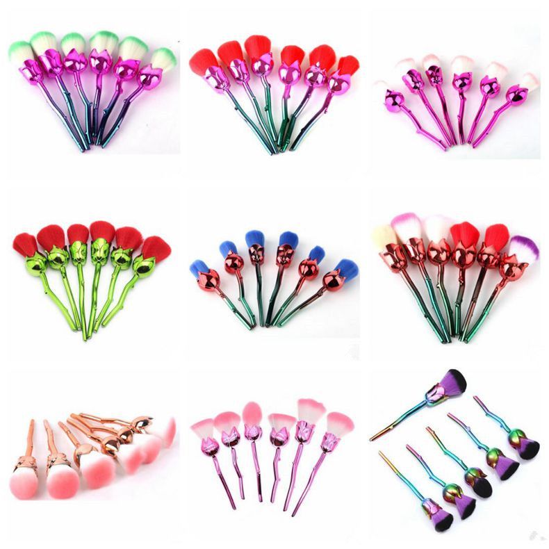 6 Pcs 3d Rose Flower Makeup Brushes Set Foundation Blending Brush Tool Beauty Cosmetic Powder Blush Makeup Brush Tool Make Up Brush Kits
