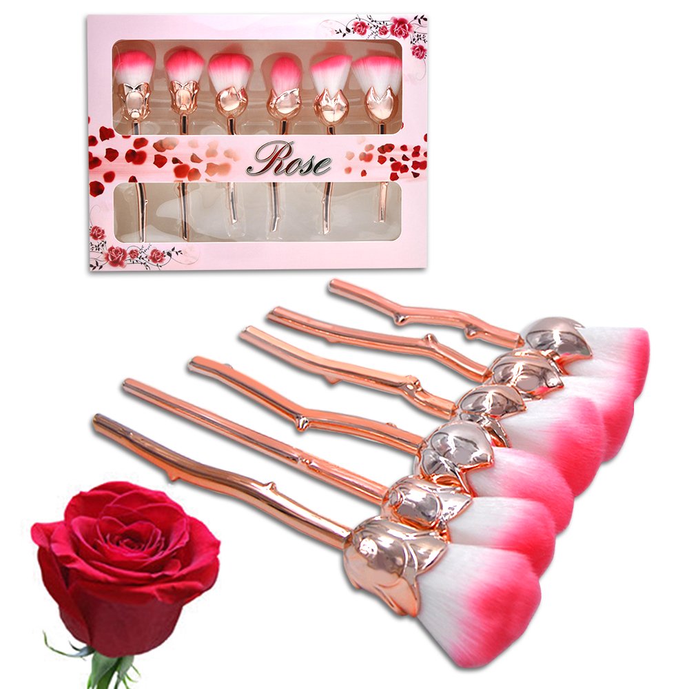 2017 6pcs Rose Shape Makeup Brushes Foundation Powder Make Up