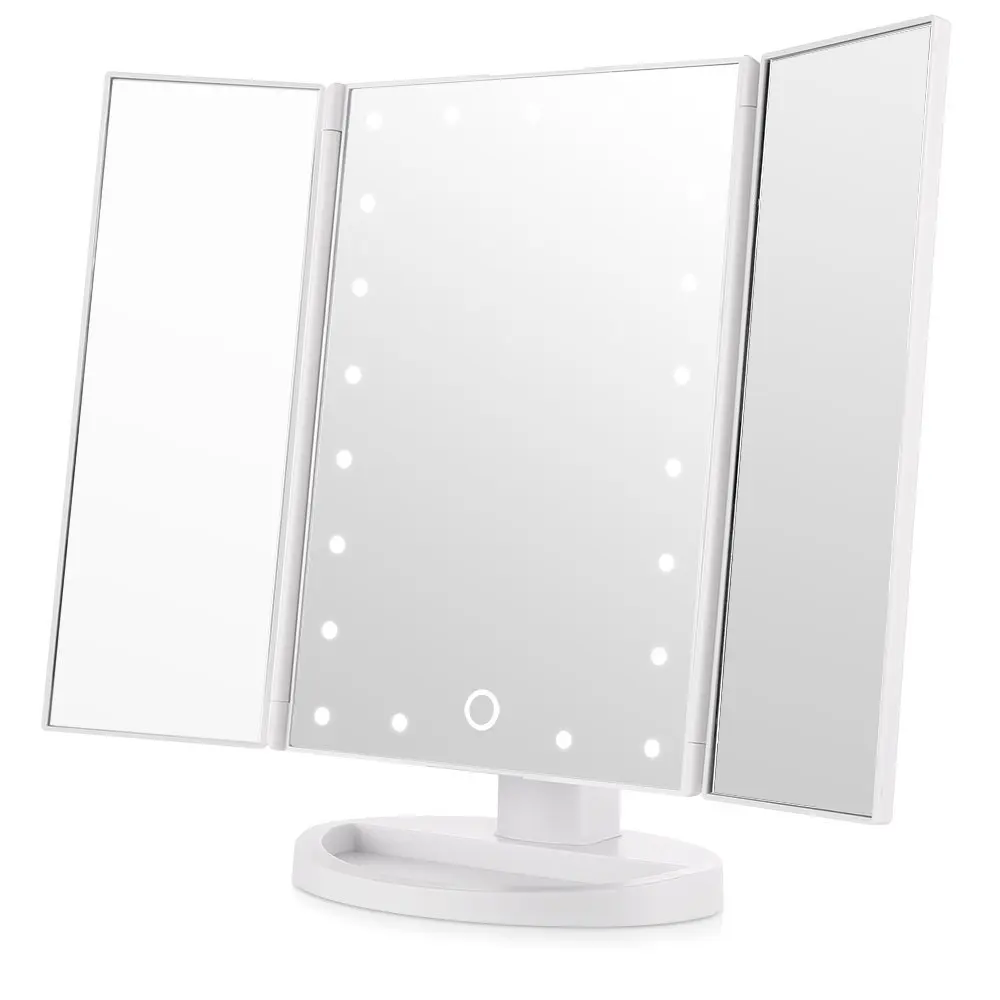 Tri Fold Illuminated Vanity Mirror 21pcs Led Lights Touch Screen