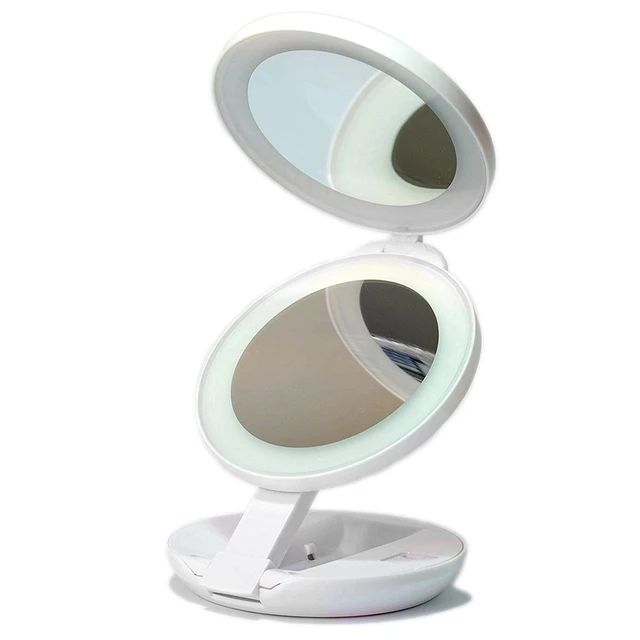 Led Round Folding Lighted Makeup Magnify Mirror Portable Duplex