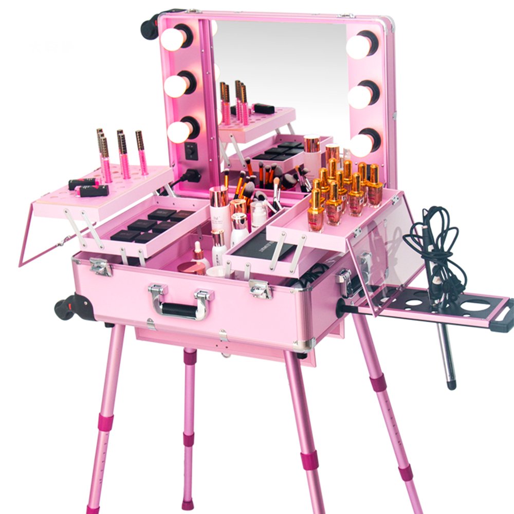 Large Makeup Artist Organizer Kit Pink Free Standing Portable Makeup