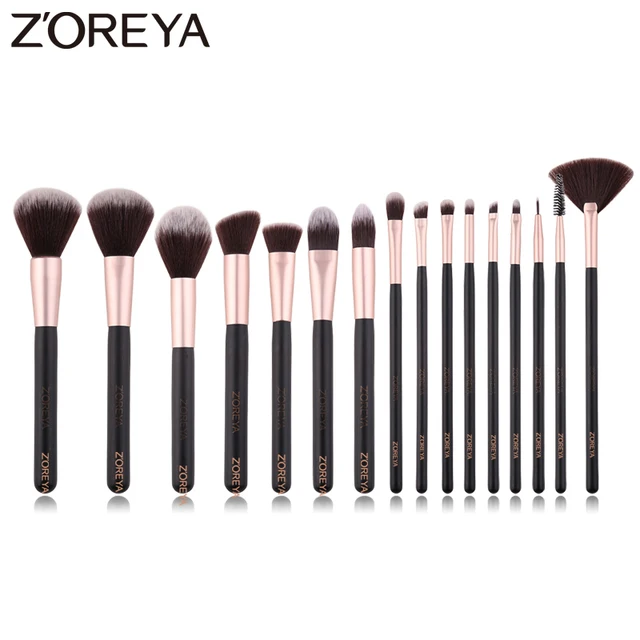 Zoreya Brand 16pcs Black Cruelty Free Makeup Brush Set Synthetic