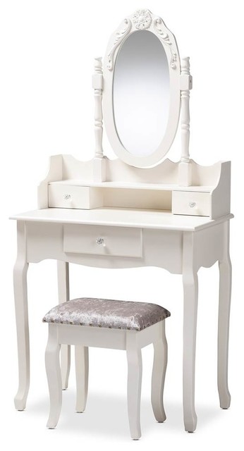 French style makeup vanity. Skip to main content. Get 5 in rewards with club o. Goplus white vanity wood makeup dressing table stool set bedroom with mirror 3drawers. The table with its drawers are great for storing all your jewelry.