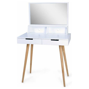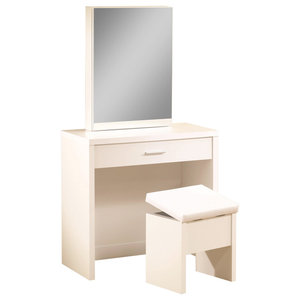 Designed to fit in smaller bedrooms this piece uses premium grade particleboard with a stain resistant white melamine veneer. Morning routines go smoother when theres a place for everything and thats exactly what this vanity table provides. This table is manufactured from premium grade particleboard covered with durable white melamine veneer that wont chip scratch stain or discolor from water ring damage. Check cheap price and buy now t01 bedroom make up vanity 55 white glossy finish hispania home shipping available within the usa.