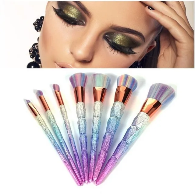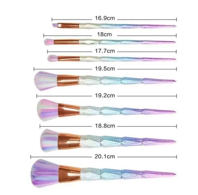 7 Pcs Makeup Brushes Set Gradient Gemstone Blue Cosmetic Brush Tools