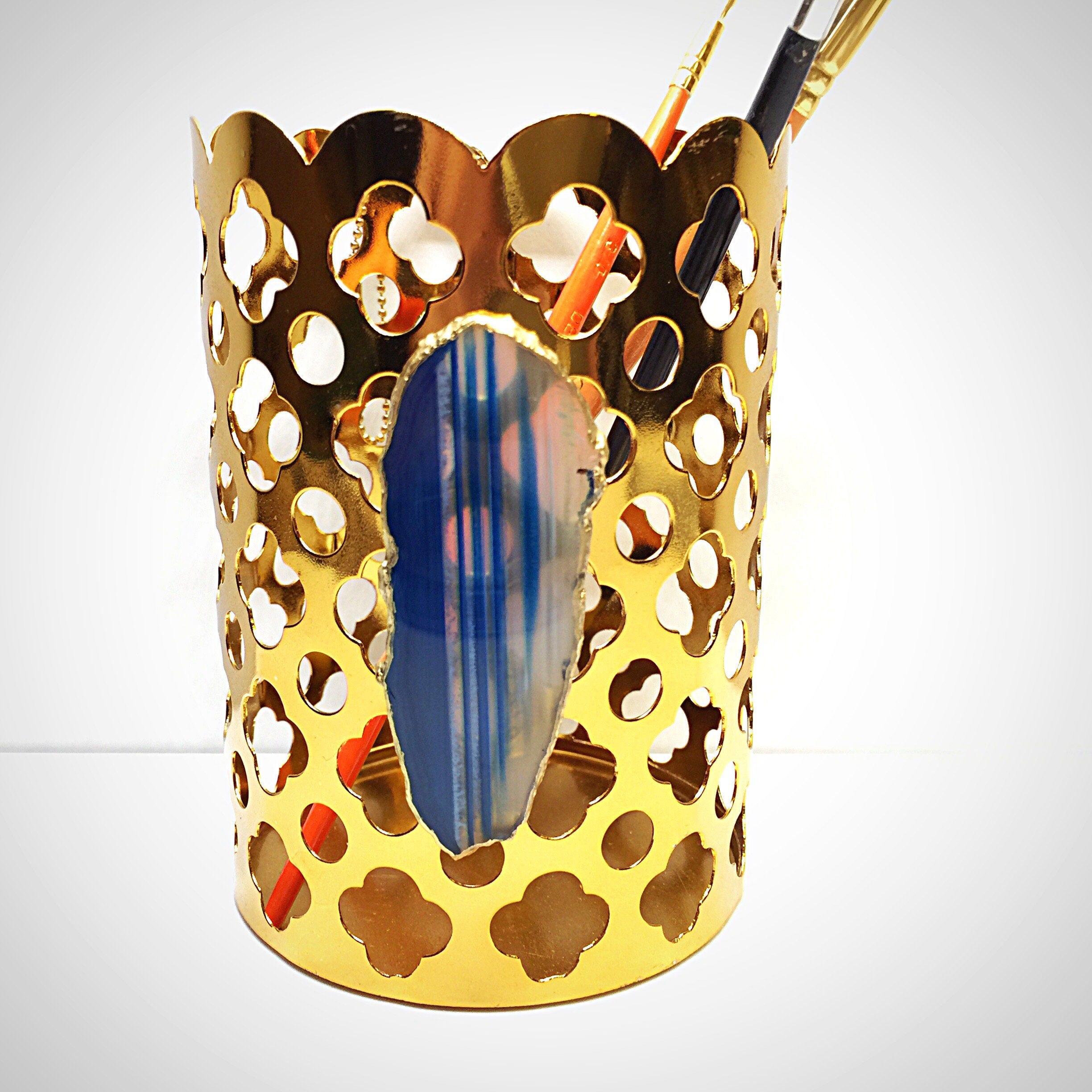 Agate Desk Organizer Vanity Storage Pencil Cup Makeup Brushes
