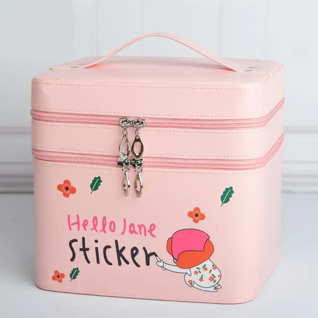Fashion Cute Cartoon Double Layer Cosmetic Bag Pvc Makeup Bag Girls