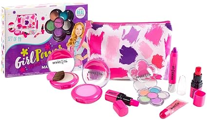 Girls washable makeup. Kids makeup set for girls with glitter cosmetics bag real washable girls makeup kit 2 nail polish 2 lipstick 2 lipgloss 3 eyeshadow cosmetic mirror all in one kid girl makeup toys kits non toxic. House is tidy makeup is findable when needed everyone is happy. The shades and texture of the colors in this kit are very vibrant and will open your girls imagination a great deal. Share the enjoyment on facebook or twitter.