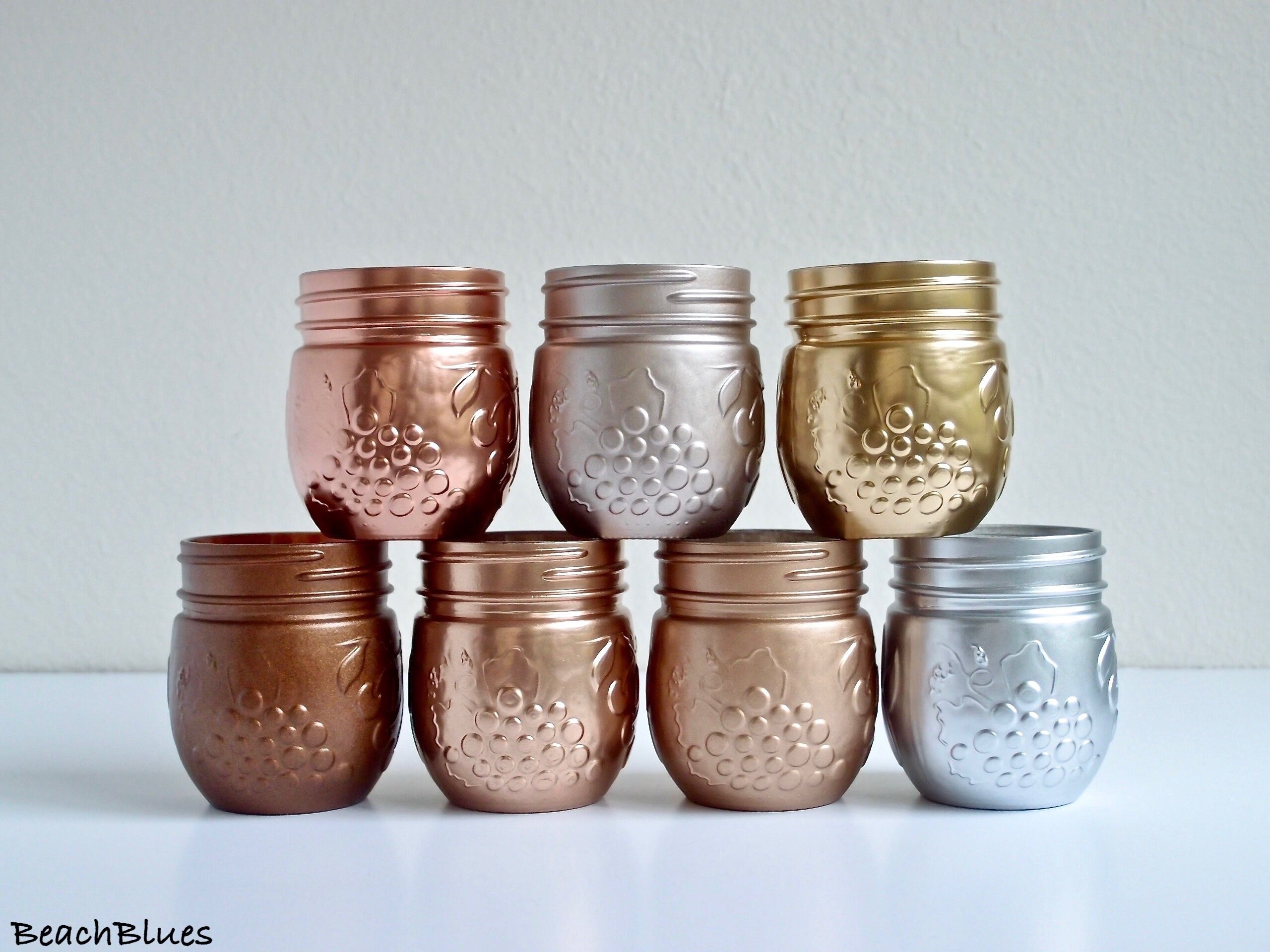 Dorm Decor Rose Gold Copper Mason Jars Makeup Brush Holders Painted Mason Jar Bathroom Accessories Metallic Small Jar Gift