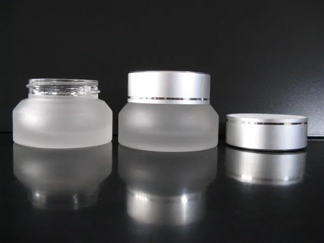 30pcs 15g Clear Frosted Glass Cream Jar With Matte Silver Aluminum