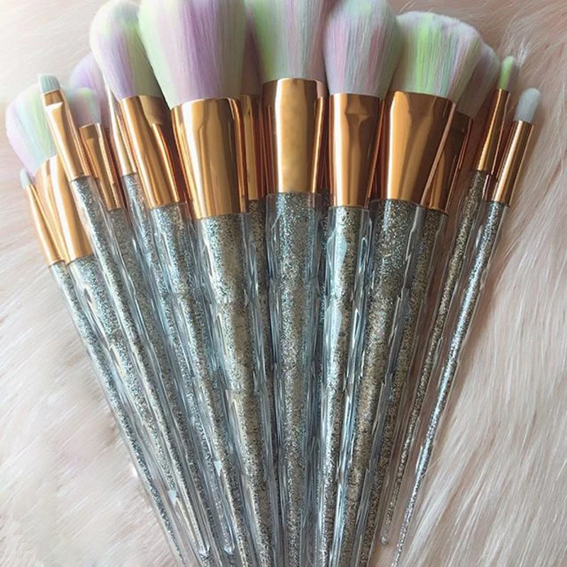 10pcs Face Makeup Brush Set Colorful Glitter Handle Make Up Tool