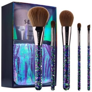 Sephora Show Me Off Brush Set Glitter Handles Stand Up Pouch Case