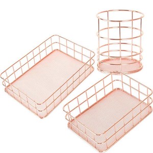 Copper Storage Basket Cosmetic Organizer Rose Gold Makeup Brushes