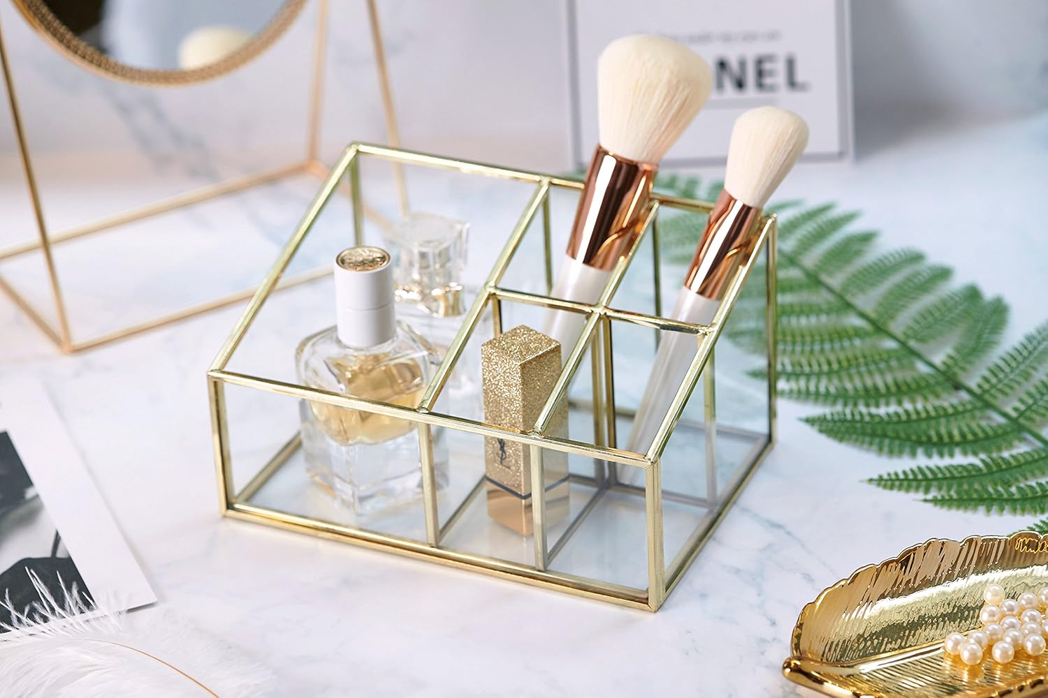 Gold Stunning Large Glass Beauty Display Cosmetics Makeup Organizer