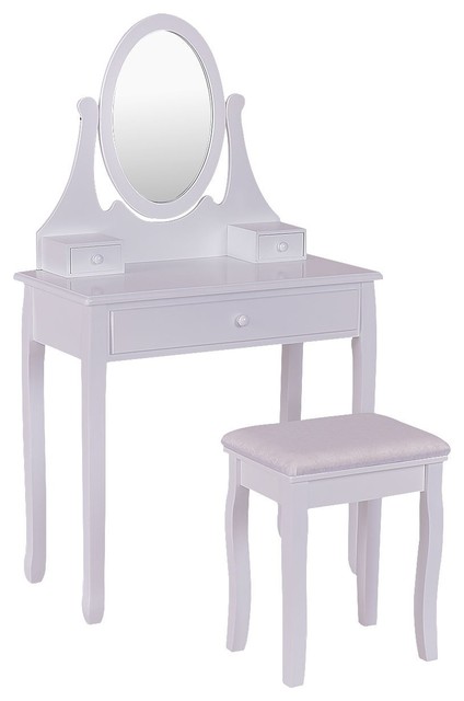 Jaxpety Wood Makeup Vanity Table Set W Oval Mirror And Stool
