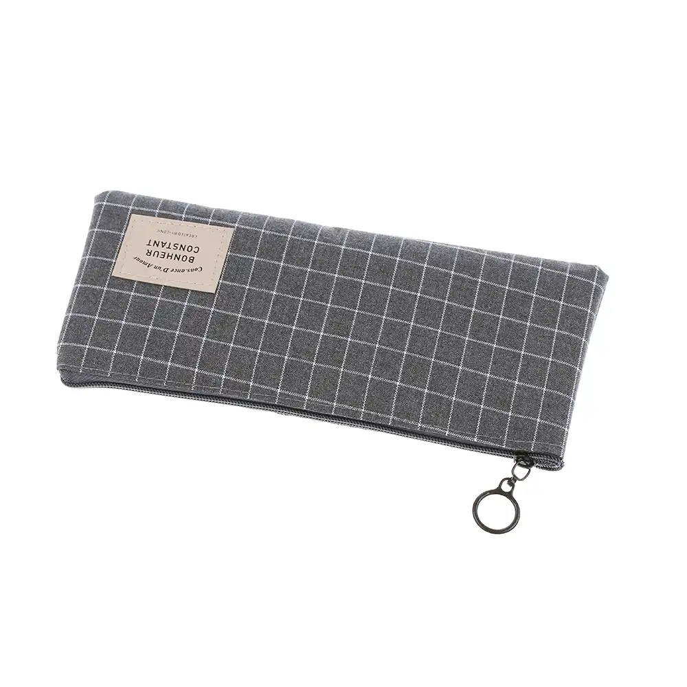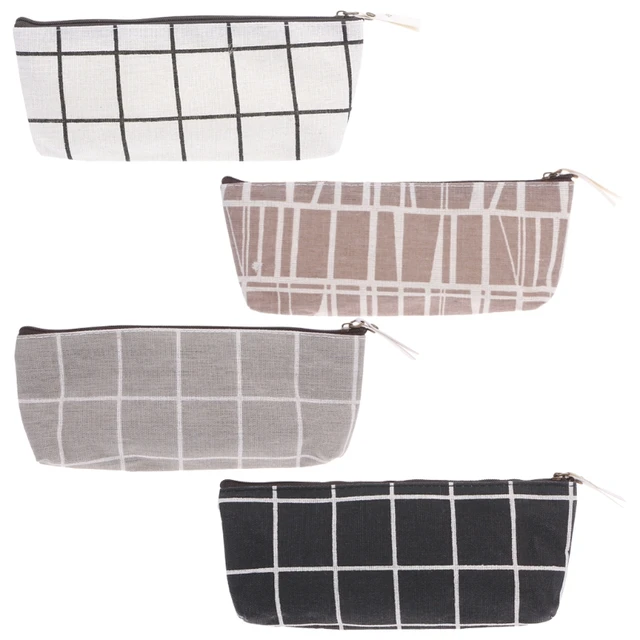 Grid Organizer Canvas Pencil Case Cosmetic Pouch Stationery Storage