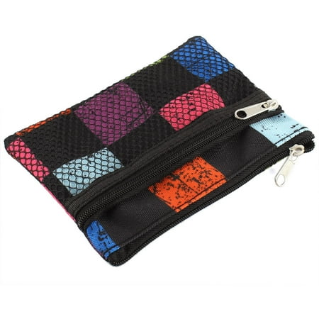 Zippered Grid Pattern Nylon Mesh Toiletry Cosmetic Makeup Bag Coin