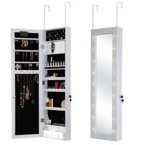 Door Hanging Storage Cabinet Mirror Led Lights Makeup Jewellery