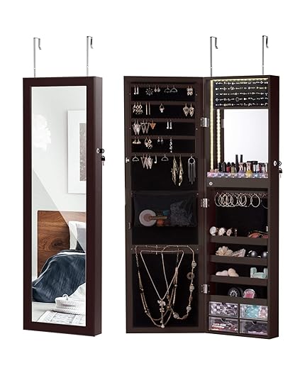 Homdox Lockable Jewelry Cabinet Full Length Mirrored Jewelry Armoire