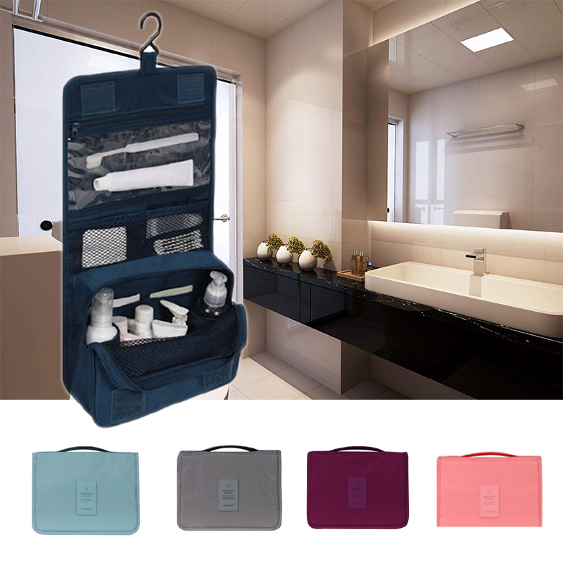 Clear storage pockets with zipper closure and metal hook to hang in bathroom or closet. Hanging travel cosmetic bag organizer easily organize your cosmetics toiletries and jewelry while traveling. Well we cant blame you if you want to go unique. Royal fair toiletry bag hanging roll up make up organizer and travel bag 4 removable cosmetic bags suit for men or women royal fair purp.