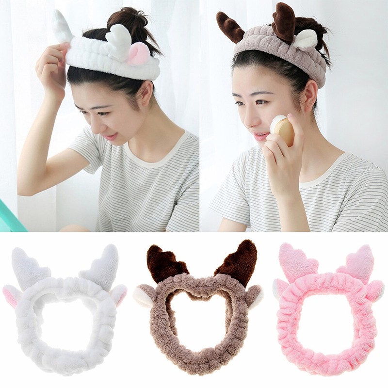 Mask Spa Women Elastic Headband Makeup Hair Band Cute Antlers Shower
