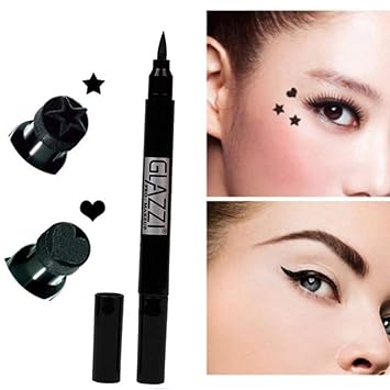 Sides Trendy Black Liquid Star Heart Tattoo Stamp Eyeliner Pencil