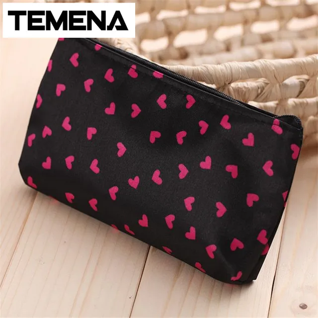 2019 Makeup Bag Heart Shaped Dots Pattern Portable Multifunction