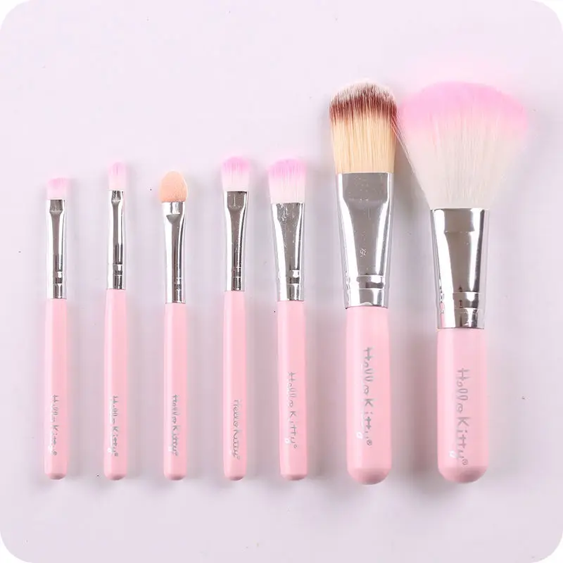 New Hello Kitty 7 Pcs Mini Makeup Brush Set Cosmetics Kit De Pinceis