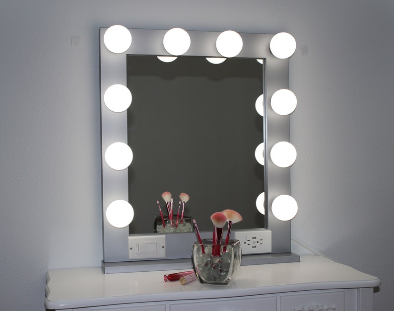 Silver 24 X 28 Hollywood Style Lighted Vanity Makeup Mirror Etsy