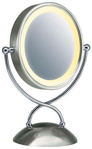 Homedics M 7001 Satin Nickel 7 5 Round Lighted Mirror With 7x