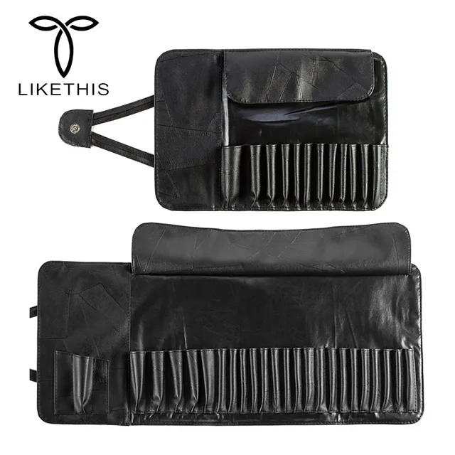 15 Types Pu Leather Travel Makeup Brushes Pen Holder Storage Empty