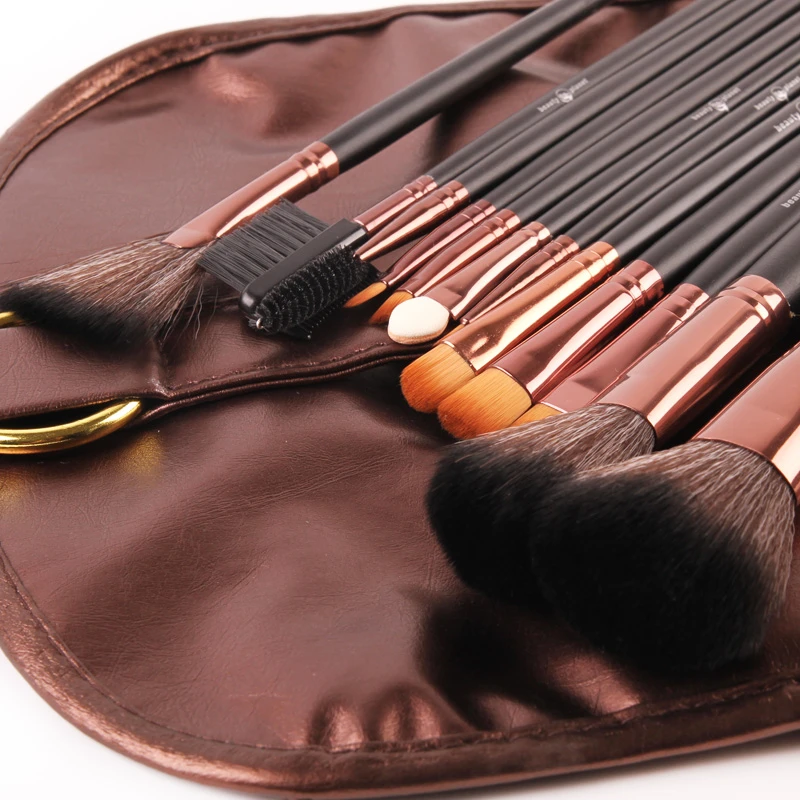 High Quality 15 Pcs Professioal Makeup Brush Set With Leather Case