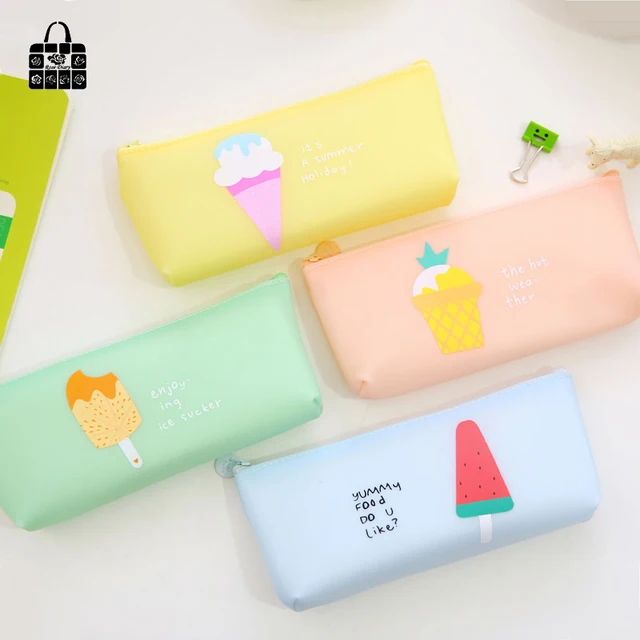1 X Kawaii Summer Ice Cream Silicone Pen Bags Zipper Women Makeup