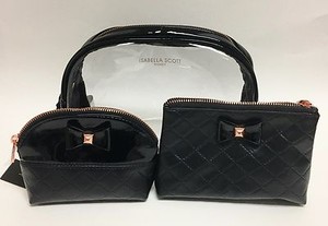 New 3 Pc Set Isabella Scott Black Pvc Rose Gold Cosmetic Makeup